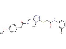 N-{[5-({2-[(3-bromophenyl)amino]-2-oxoethyl}thio)-4-methyl-4H-1,2,4-triazol-3-yl]methyl}-2-(4-methoxyphenyl)acetamide Show me analogs: 2D | 3D | 2D&3D